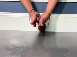 Sexy Charli Shiin gives him a footjob before she switches to her hands