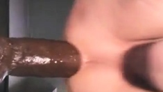 Cum-drinking boy toy chokes on his dominant lover's fat prick in public