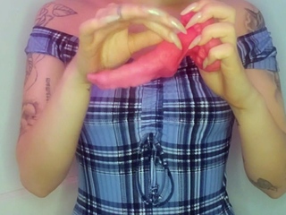 Blonde With Natural Big Boobs Loves Putting A Toy In Her