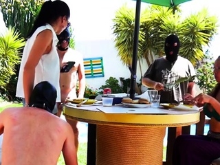 Slim babe gives a great blowjob and gets fucked in the ass by the pool
