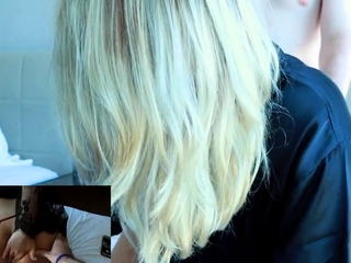 Tanned blonde beauty makes love to her boyfriend for the camera