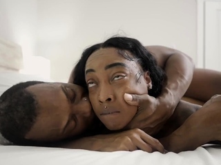 Attractive ebony chick with big boobs and a superb ass wildly fucks a black cock