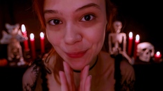 Redheaded pierced teen close up toy show