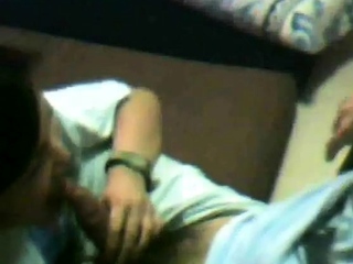 Naughty Asian chick uses her lips and hands to please two big pricks