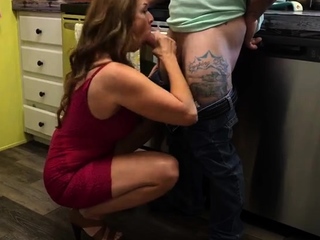 Cougar Mom Cheats with Big Cock Son while Dad is Not Paying