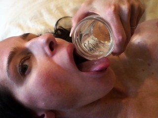 Brunette teen swallowing cum in POV blowjob