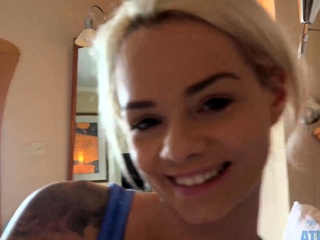 Blonde tight pussy babe solo toy fun in glamour masturbation