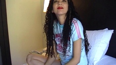 Cute curly brunette solo webcam masturbation