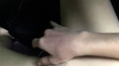Plump ebony tugging a big white cock close up and loving it